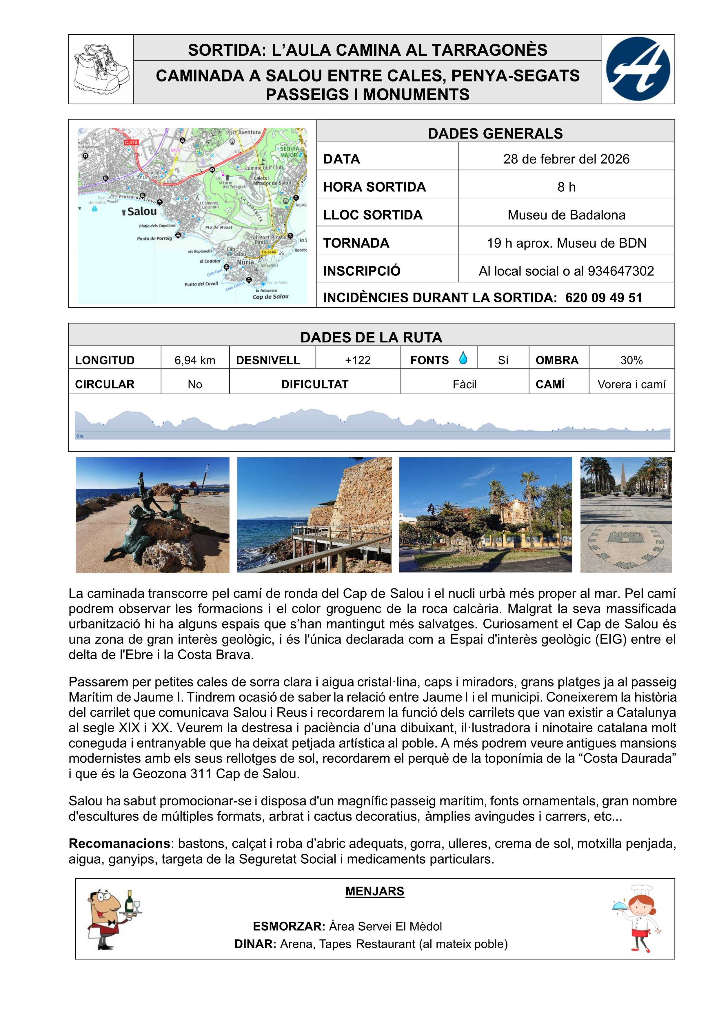 Sortida des del Museu a les 8:00 h. Tornada entre 18:00 i 19:00 h.